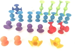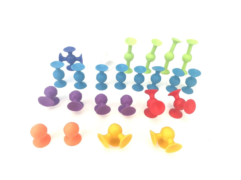 Silikona piesūcekņu spēļu komplekts bērniem sniedz bezgalīgas iespējas būvēt, savienot un radīt. Pateicoties piesūcekņiem, atsevišķās detaļas stingri turas gandrīz jebkur — uz loga, galda, vannā vai ceļojumu galdiņiem — un tās var viegli noņemt, neatstājot pēdas.