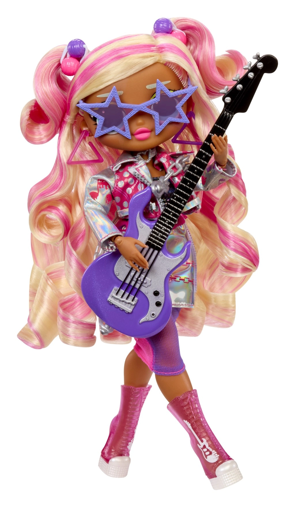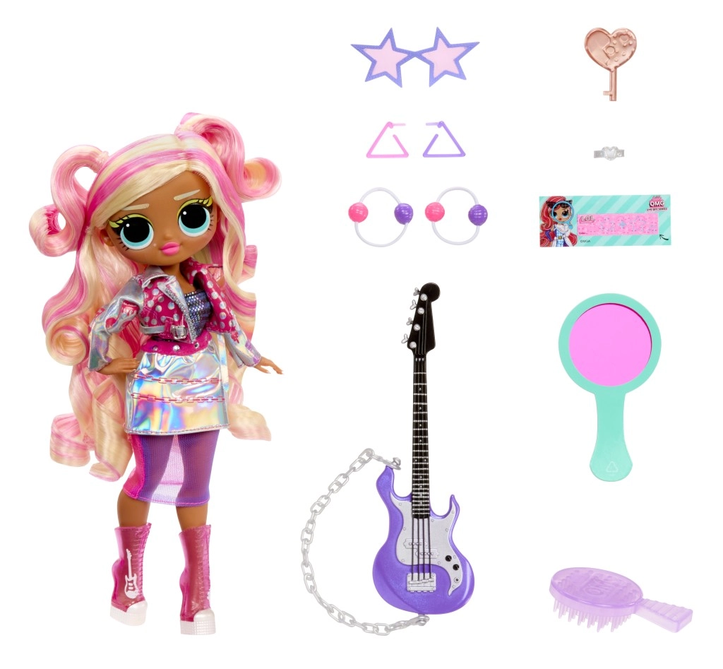 Izbaudi spriedzes pilnu izsaiņošanu ar L.O.L. Surprise! O.M.G. Lielo māsu Rockstar. Tevi gaida 15+ pārsteigumu, kodu atšifrēšana, izskata maiņa aukstā ūdenī un divi tēli vienā bezgalīgām modes kombinācijām. Komplektā ir ģitāra, stilīgi aksesuāri, matu birste un stends pozēšanai.