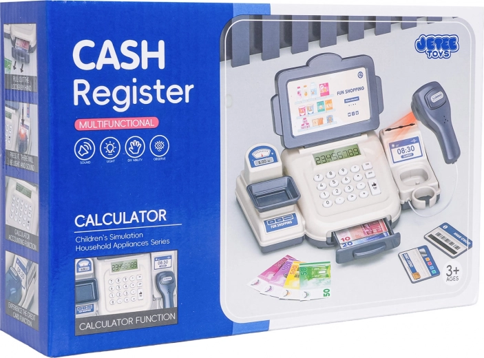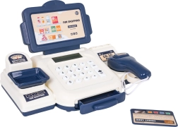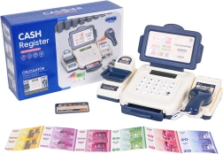 Komplektā ietilpst rotaļu banknotes dažādās vērtībās un maksājumu karte, tāpēc bērni var izmēģināt norēķinus skaidrā naudā un ar karti. Atveramā naudas atvilktne un pārskatāms displejs rada autentisku veikala atmosfēru – lieliski gan patstāvīgai spēlei, gan kopīgai izklaidei ar draugiem un brāļiem vai māsām.