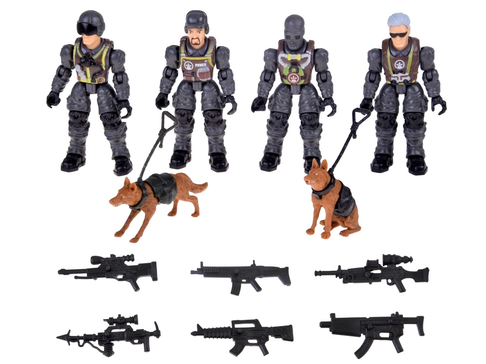 Šis 12 daļu komplekts ir ideāls bērniem, kuri mīl darbību un piedzīvojumus. Izveidojiet savu speciālo vienību, dodieties glābšanas misijās un trenējieties kopā ar četrkājainajiem partneriem. Kustīgas ekstremitātes un bagātīgi piederumi nodrošinās stundām ilgu izklaidi un reālistisku spēli.