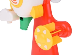 Rotaļlietu ir viegli piestiprināt ar spēcīgiem piesūcekņiem pie gludas virsmas. Bērni attīsta sīko motoriku, roku‑acu koordināciju un sensorās prasmes, lejojot, šļakstinot un vērojot plūstošu ūdeni. Slēgtā cirkulācija taupa ūdeni un atvieglo lietošanu bez pastāvīgas pieliešanas.