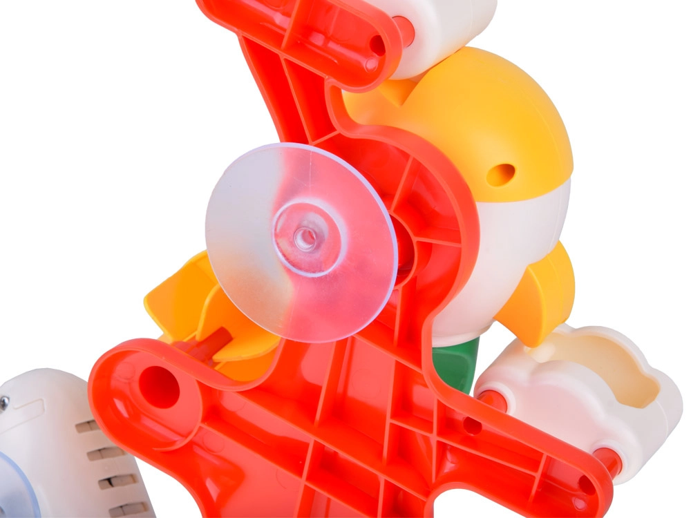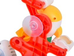 Spēcīgie piesūcekņi notur rotaļlietu stabili uz gludām virsmām, piemēram, flīzēm vai vannas malas. Uzstādīšana ir ātra un bez instrumentiem.