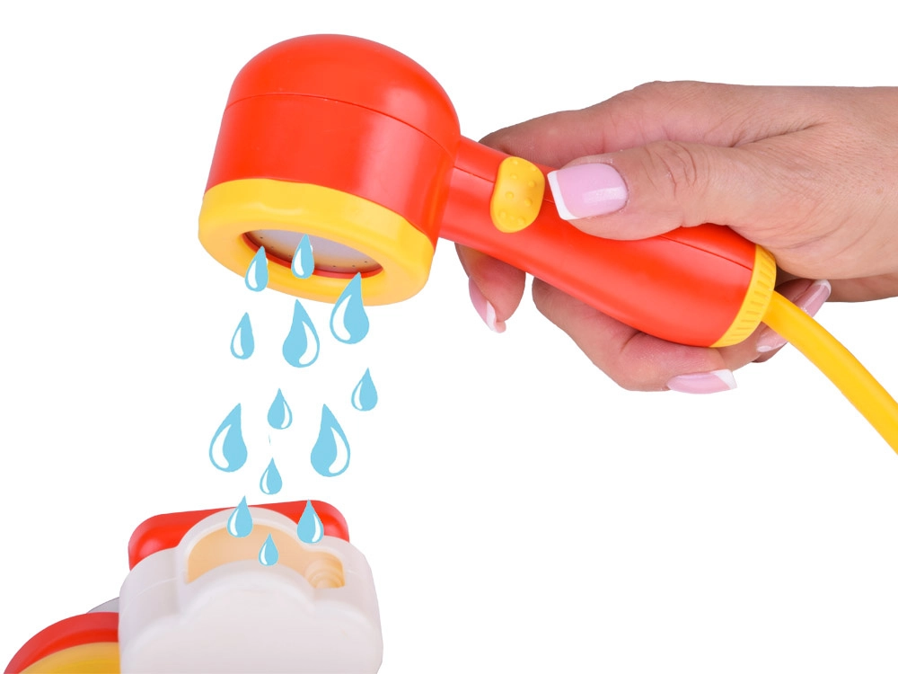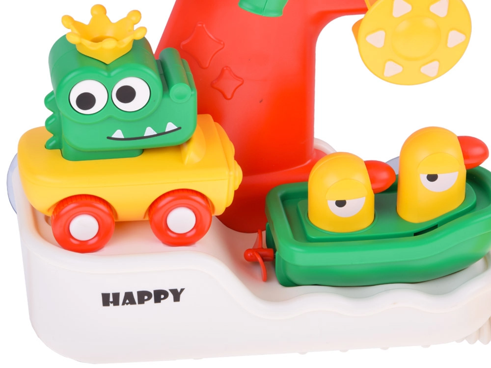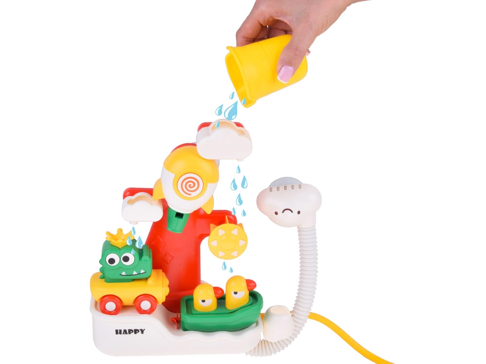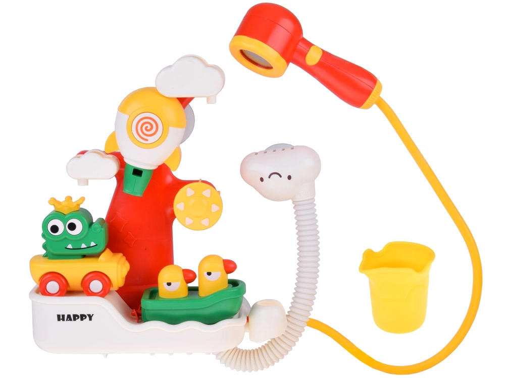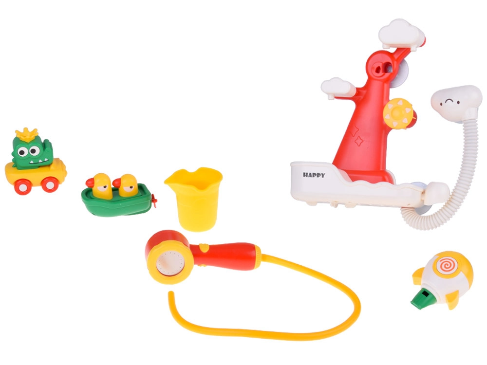 - 4‑in‑1 ūdens stacija – rokas duša, krūzīte, peldoša laiviņa ar pīlītēm, krokodils automobilītī