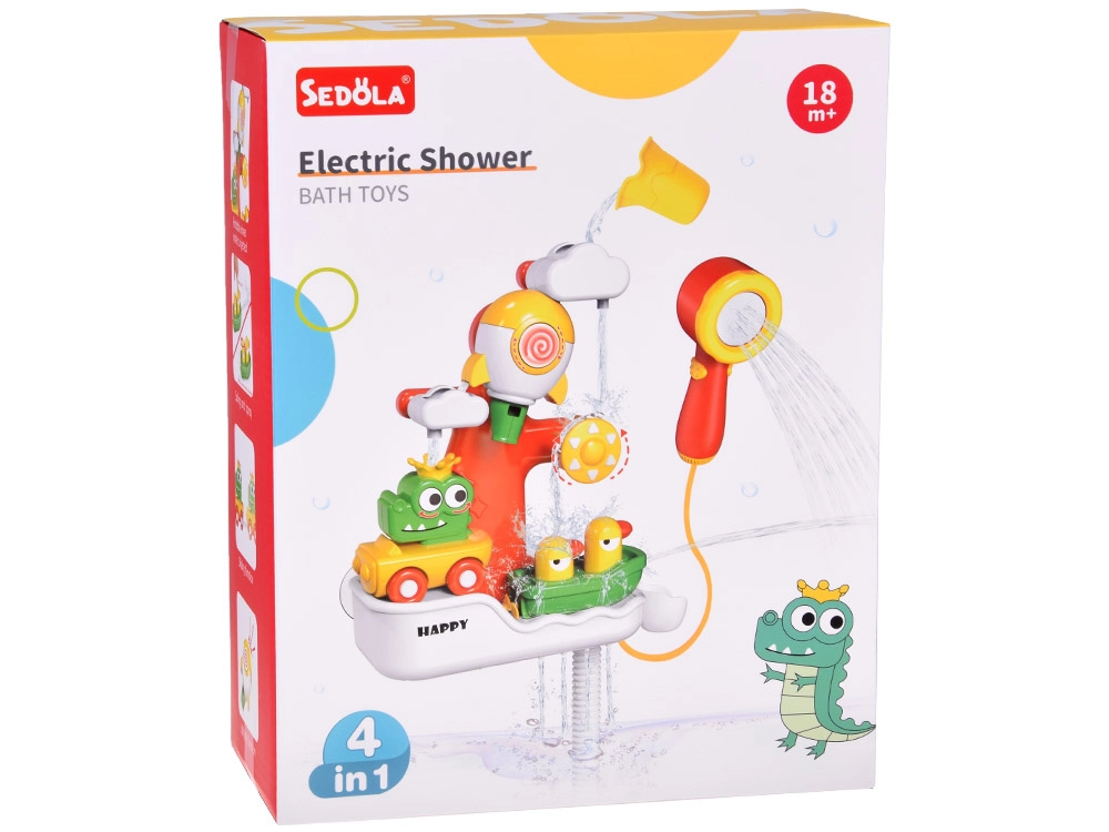 Pārvērtiet katru vakara vannošanos jautrā piedzīvojumā! Šī krāsainā 4‑in‑1 vannas rotaļlieta piedāvā elektrisko dušu ar slēgtu ūdens cirkulāciju, griežamus un šļakstošus elementus un peldošus piederumus. Pateicoties piesūcekņiem, to var viegli piestiprināt pie vannas vai flīzēm, un bērni izbaudīs drošu ūdens izklaidi ar krokodilu un pīlītēm.