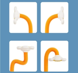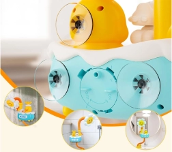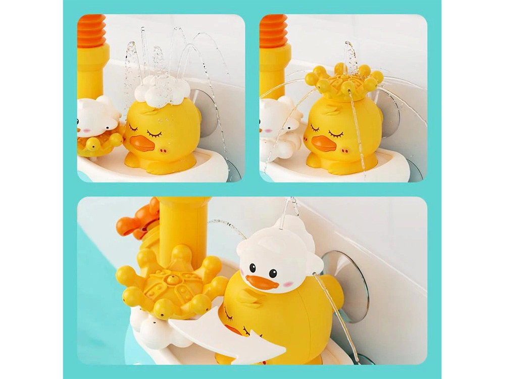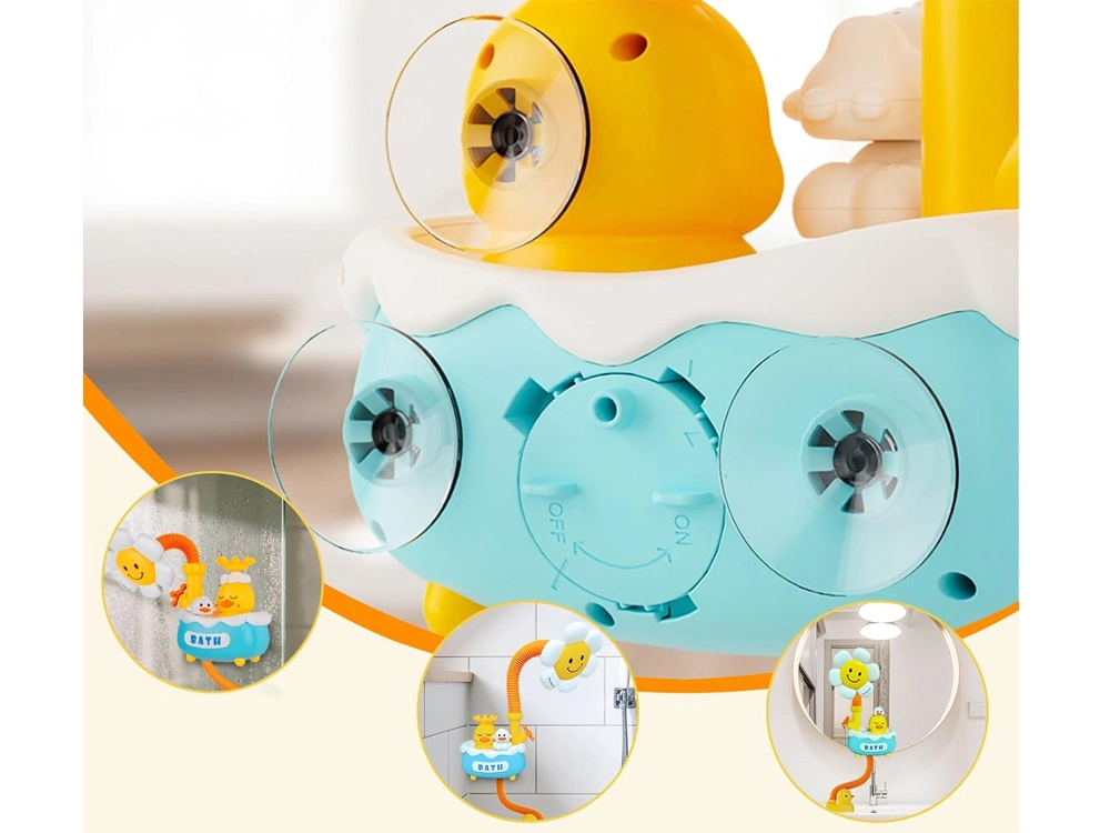 Praktiskā elastīgā šļūtene ļauj precīzi noregulēt strūklas virzienu, bet maināmie uzgaļi veido dažādus strūklas efektus – no vieglas smidzināšanas līdz rotaļīgai šļakstīšanai. Stabilie piesūcekņi notur komplektu uz vietas gan uz gludām flīzēm, gan uz vannas malas.