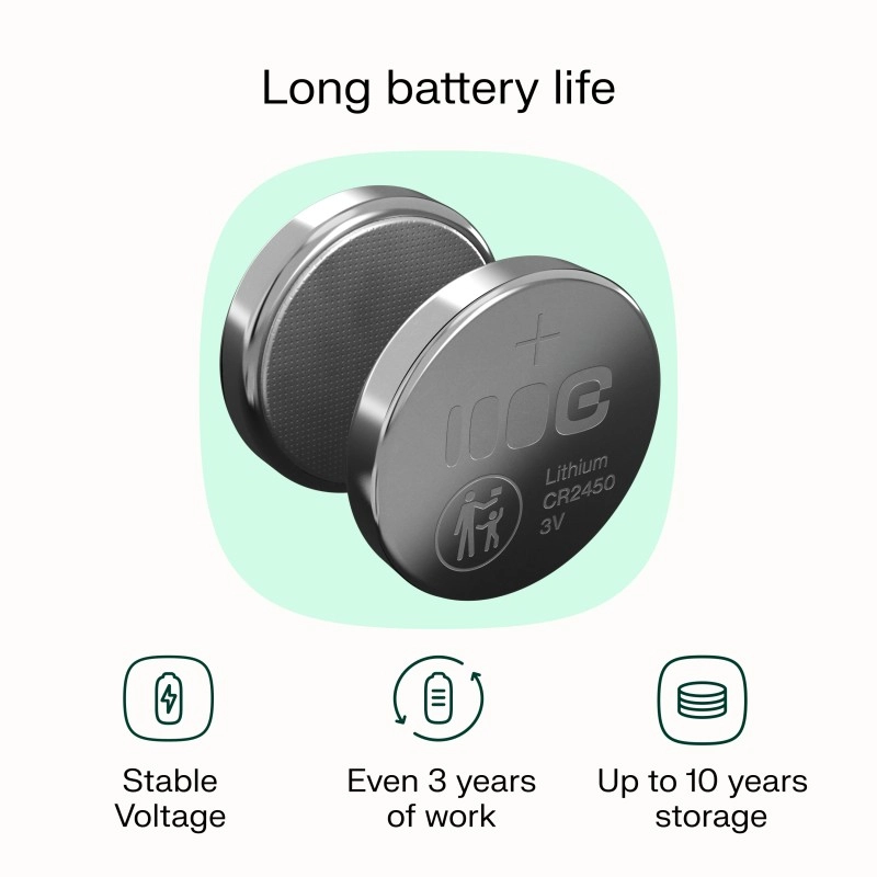 Uzticamās litija baterijas CR2450 GREENCELL ir izstrādātas kā stabils un ilgtermiņa enerģijas avots ikdienas lietošanai. Pateicoties reālajai ietilpībai 600 mAh, tās nodrošina lielāku veiktspēju nekā parastās sārmu alternatīvas un ir gatavas lietošanai uzreiz pēc izņemšanas no blistera. Pareizi uzglabājot, tās saglabā līdz pat 90% ietilpības arī pēc 10 gadiem.
