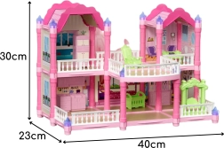 Leļļu namiņš Woopie Dārza villa bērniem sniedz pasakainu noskaņu un nebeidzamas rotaļu iespējas. Divi stāvi, sešas pārdomātas istabas, terase un dekoratīvie elementi veido pievilcīgu “pili”, kas ar spīdošajiem tornīšiem burtiski iemirdzas. Pasteļtoņu rozā, violetās un mentolzaļās krāsas rada omulīgu vidi gan patstāvīgām, gan kopīgām spēlēm.