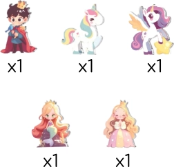 Komplekts ir lieliski piemērots formu un krāsu apguvei, smalkās motorikas un pacietības attīstīšanai. Iekļautas arī mīlīgas princeses, prinča un vienradžu figūriņas vēl plašākām spēļu iespējām. Viss izgatavots no drošiem un izturīgiem materiāliem, piemērots bērniem no 3 gadu vecuma.
