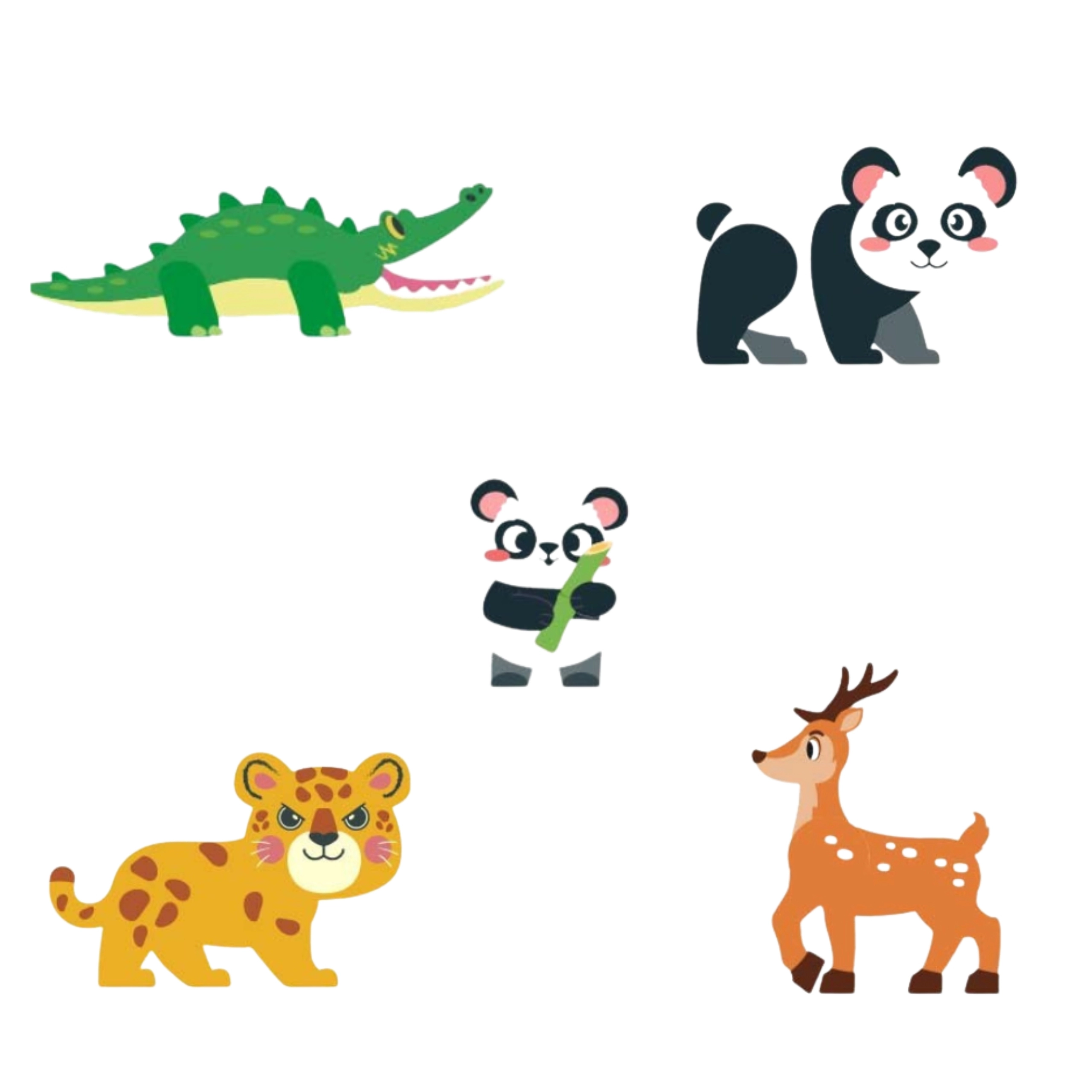 - Reti dzīvnieki (panda, leopards, briedis, krokodils)
