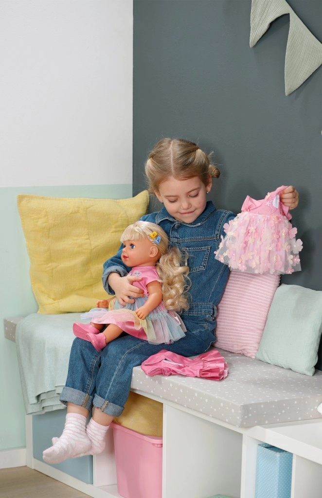 Lelle BABY born Carla ir ideāla draudzene radošām spēlēm un frizūru eksperimentiem. Garos neilona matus ir viegli ķemmēt un veidot, un ar komplektā iekļauto ķemmi, gumijām un sprādzēm var izveidot neskaitāmas frizūras. Reālistiskais izskats, kustīgās ekstremitātes un spēja stāvēt patstāvīgi veicina iztēli un lomu spēles.