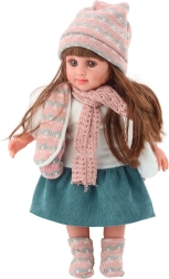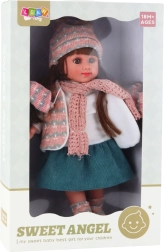 Mīlīgā lelle SWEET ANGEL ar augstumu 36 cm iepriecinās ikvienu bērnu, kurš mīl ģimenes lomu spēles un rūpes. Tai ir gari brūni mati, smalkas sejas iezīmes un reālistiskas acis. Tērpta ziemas komplektā – cepurē, šallē un jakā, ko papildina svārki, blūze un zeķes. Lieliski piemērota iztēles attīstīšanai un lomu spēlēm.