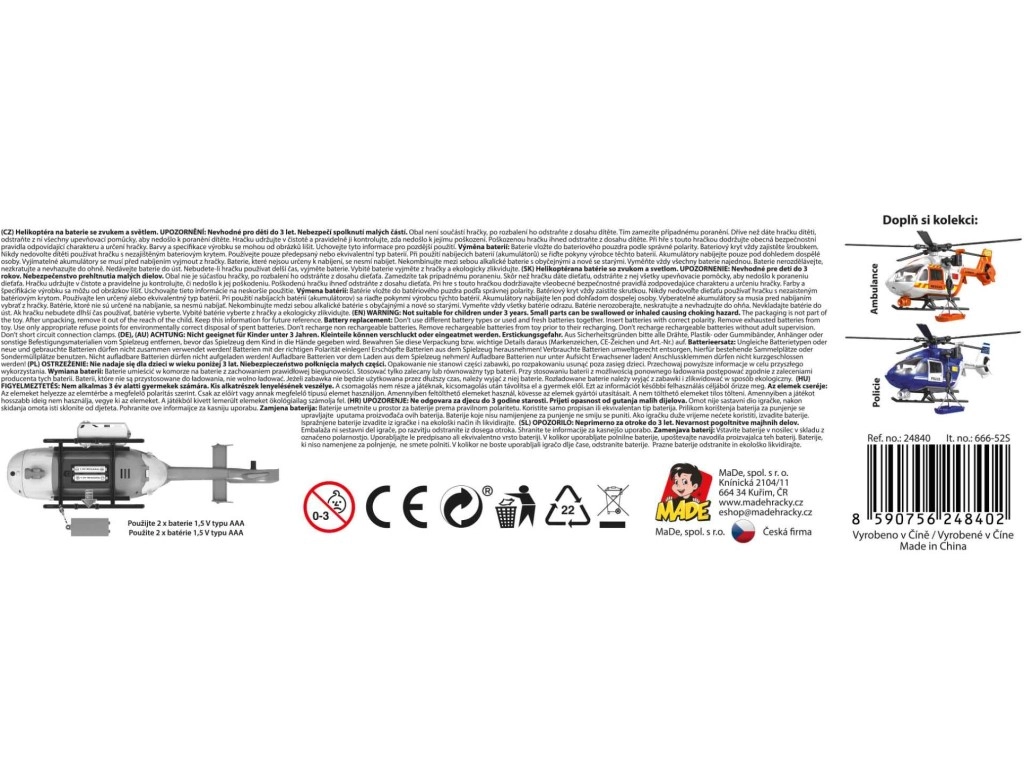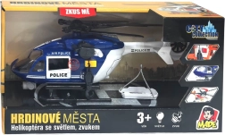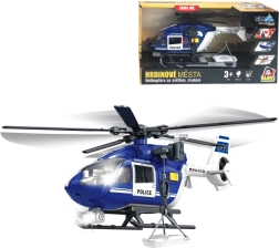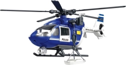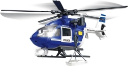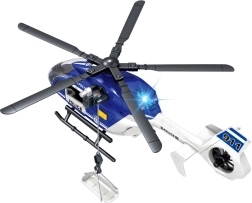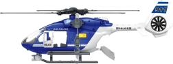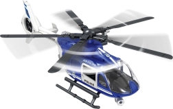 Kabīne ar caurspīdīgu pārsegu, nosēšanās slēpes un izteikts policijas marķējums. Kvalitatīva plastmasa izturēs arī intensīvas bērnu rotaļas.
