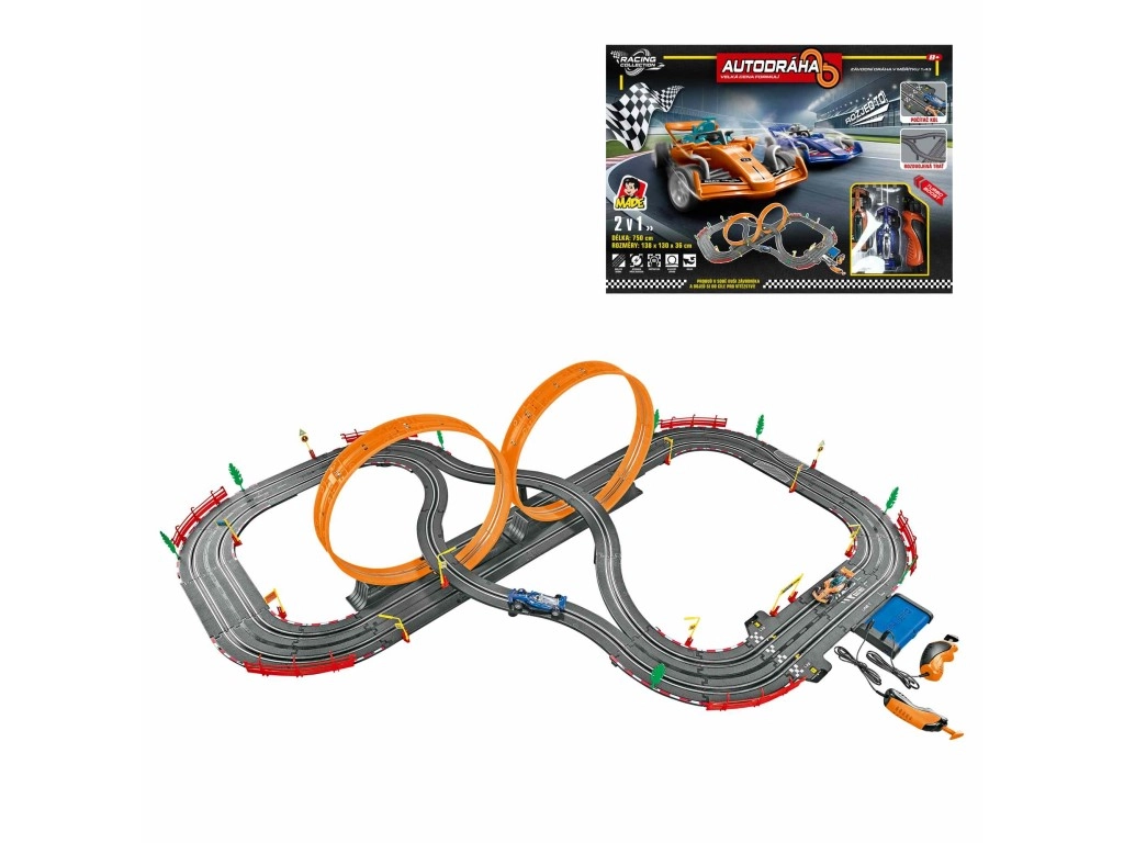 Izbaudiet mājas sacīkstes ar autotrasi ar formulām, kuras garums ir 7,5 metri. Stabilā trase no kvalitatīvas plastmasas, vienkārša vadība un 12 V adapteris komplektā nodrošina ātru braukšanu un daudz izklaides bērniem no 3 gadu vecuma.
