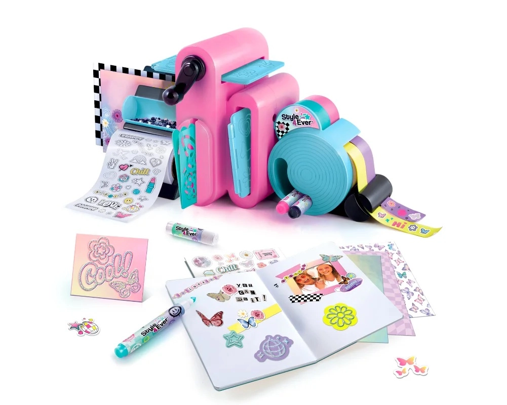 Iepakojumā atradīsiet dekoratīvo staciju, piezīmju kladi, dažādu krāsu un rakstu papīrus, metāliskās folijas, dekoratīvās lentes, uzlīmes, trafaretus embossingam un pārvilkšanai, flomāsterus, līmi un citus piederumus. Pateicoties tam, bērni viegli izveidos kartītes, kolāžas, apsveikumus, scrapbooking lapas vai personalizētus aksesuārus.