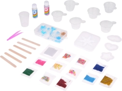 Atklājiet sveķu burvību un izveidojiet savus atslēgu piekariņus, piekariņus un aproces ar šo pilno DIY komplektu. Tajā atradīsiet visu nepieciešamo: divkomponentu epoksīdsveķus A+B, silikona formas, spīdumus un fliterus, krelles, kausiņus, maisāmkociņus, pinceti un organizētāju. Komplekts attīsta radošumu un sīko motoriku un ir ideāli piemērots iesācējiem un jaunajiem meistariem pieaugušo uzraudzībā.