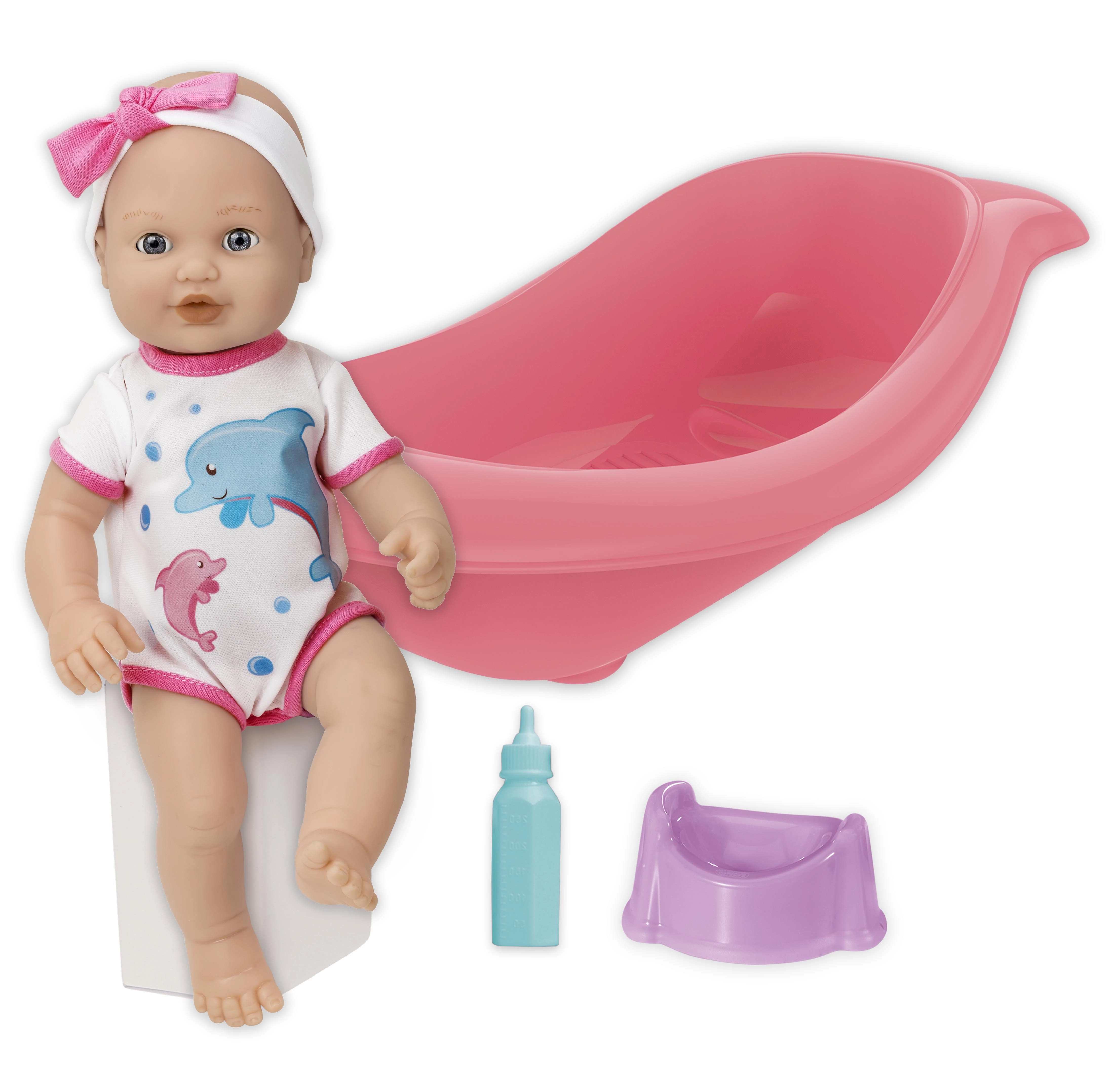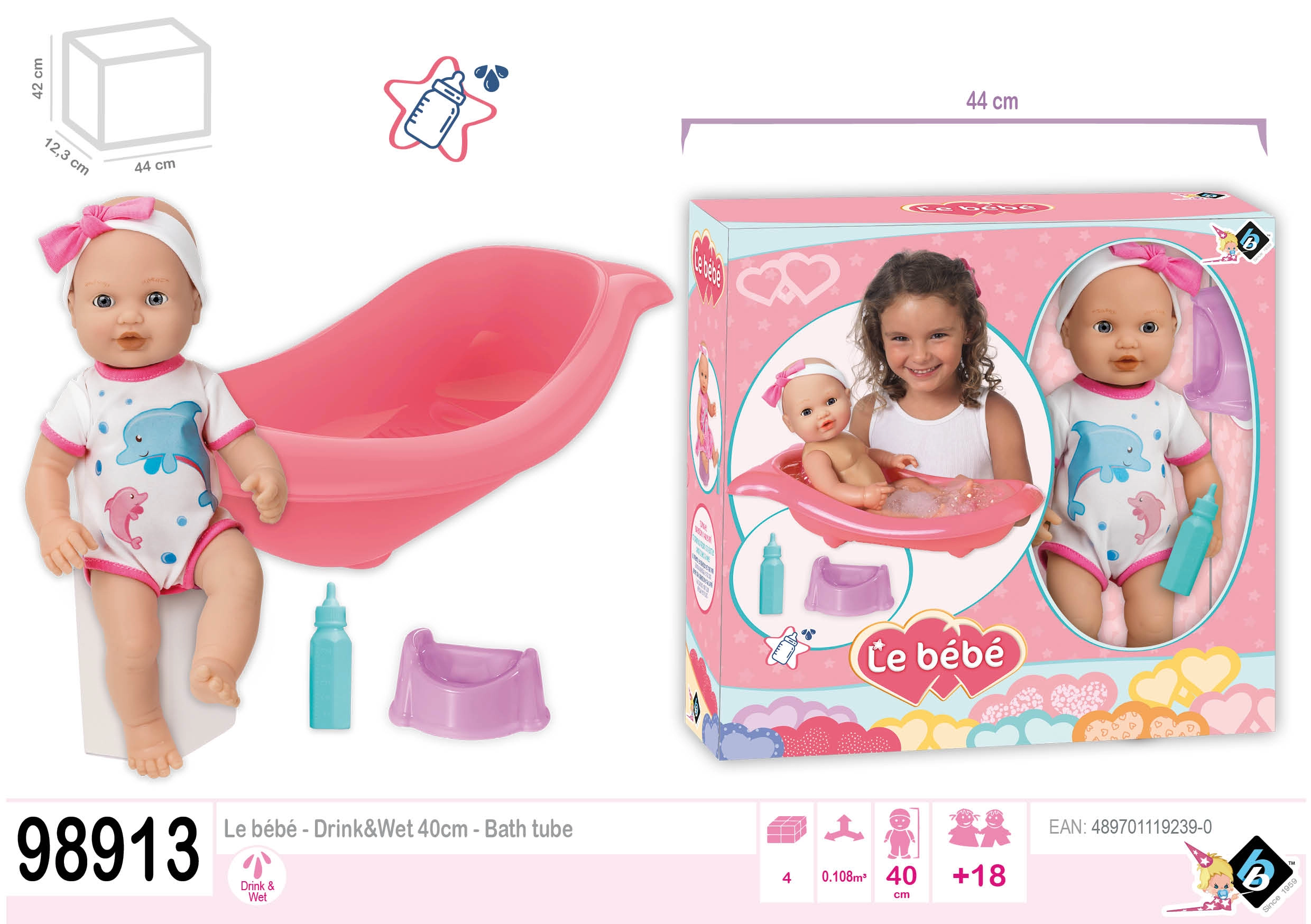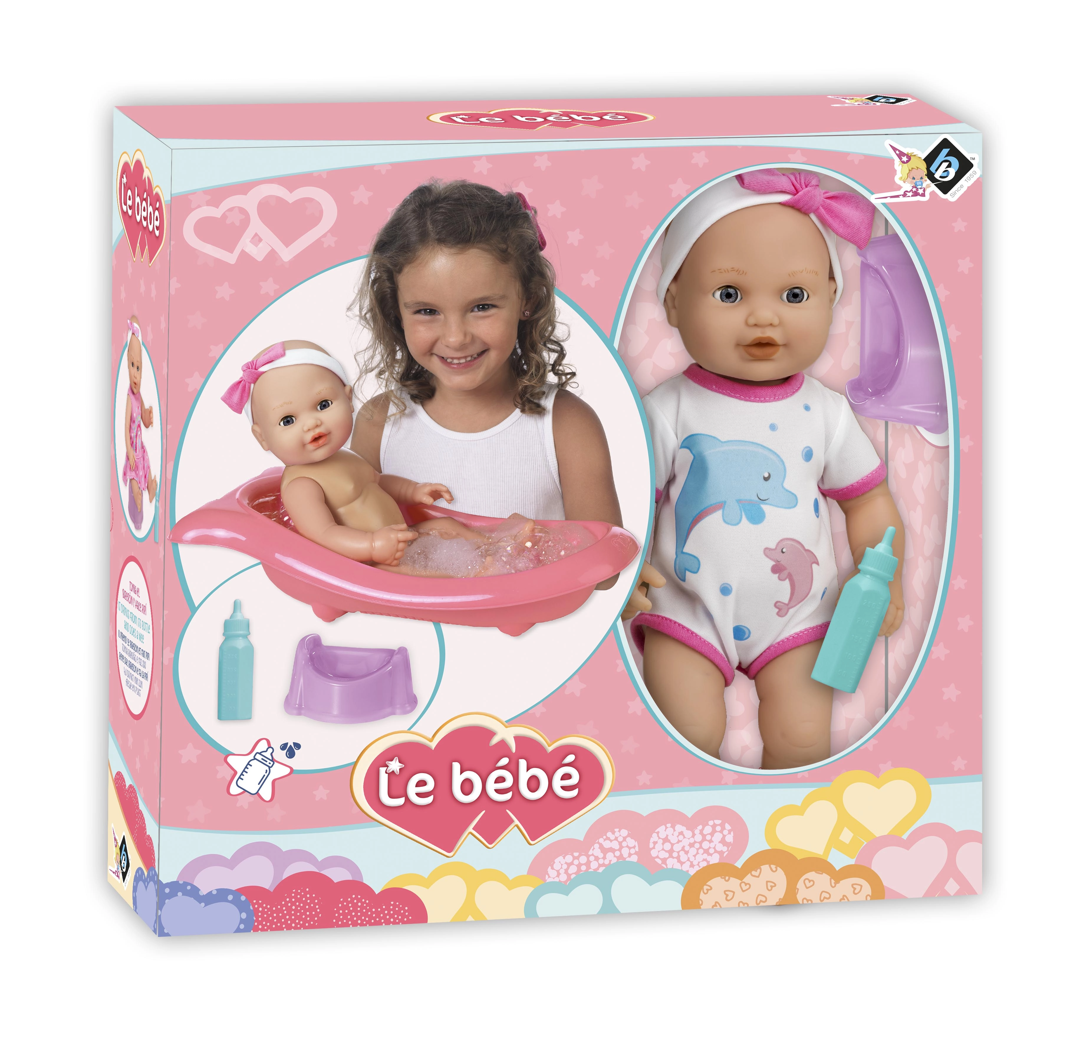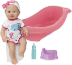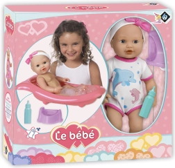 Mīlīga lellīte ar peldināšanas un pārtīšanas komplektu iepriecinās ikvienu bērnu. Iepakojumā ietilpst 41 cm gara vanniņa, pudelīte un podiņš. Leļļai ir kustīga galva un locekļi, un, noliekot uz muguras, tā aizver acis. Pateicoties funkcijai čurā pēc padzēriena no pudelītes, bērni varēs izbaudīt realistisku rūpju spēli.