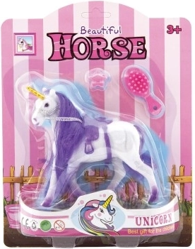 Mīlīgs plastmasas vienradzis ar maigu, samtainu virsmu bērniem ienes fantāzijas burvību. Tam ir bieza ķemmējama krēpe un aste, kā arī segli un piederumi vēl jautrākai spēlei. Ideāla dāvana zirgu mīļotājiem no 3 gadu vecuma.