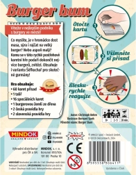 Burger Bum ir raita ģimenes kāršu spēle, kurā jūs veidojat gardus burgerus no sastāvdaļu kārtīm. Uzvar tas, kam spēles beigās ir visvairāk kāršu kaudzē – panākumu atslēga ir ātra reakcija, uzmanība un pareizs brīdis, kad burgers ir gatavs.