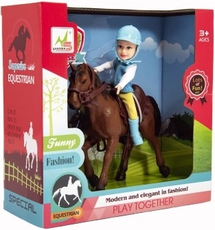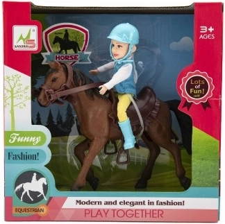 Visus mazos zirgu mīļotājus iepriecinās džokejs ar zirgu, pavadu un segliem. Džokejam jābūt ģērbtam jāšanas apģērbā un jālieto ķivere. Zirga krēpes un aste nav ķemmējamas. Izgatavots no kvalitatīviem un izturīgiem materiāliem. Iepakojuma izmēri: 23 × 23 × 9,5 cm. Piemērots bērniem no 3 gadu vecuma.