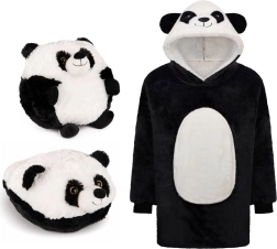 Ietinieties maksimālā komfortā ar PANDA mikrodžempera segu no Cozy Noxxiez – oversize džempera un segas apvienojums visas dienas atpūtai. Iekšpusē super mīksts un pūkains šerpas flīss, ārpusē maigs flanelis, liela panda kapuce un plaša priekšējā kabata rokām un sīklietām. Ideāli dīvānā, darbam pie datora, kempingam un vēsiem vakariem terasē.
