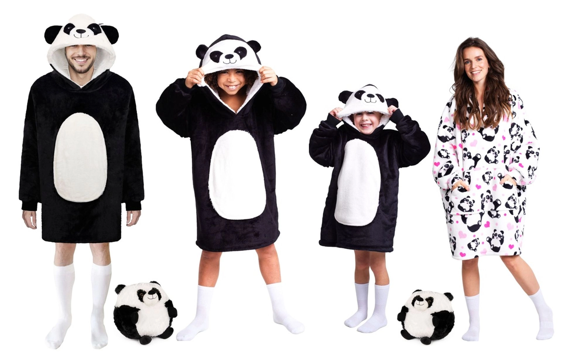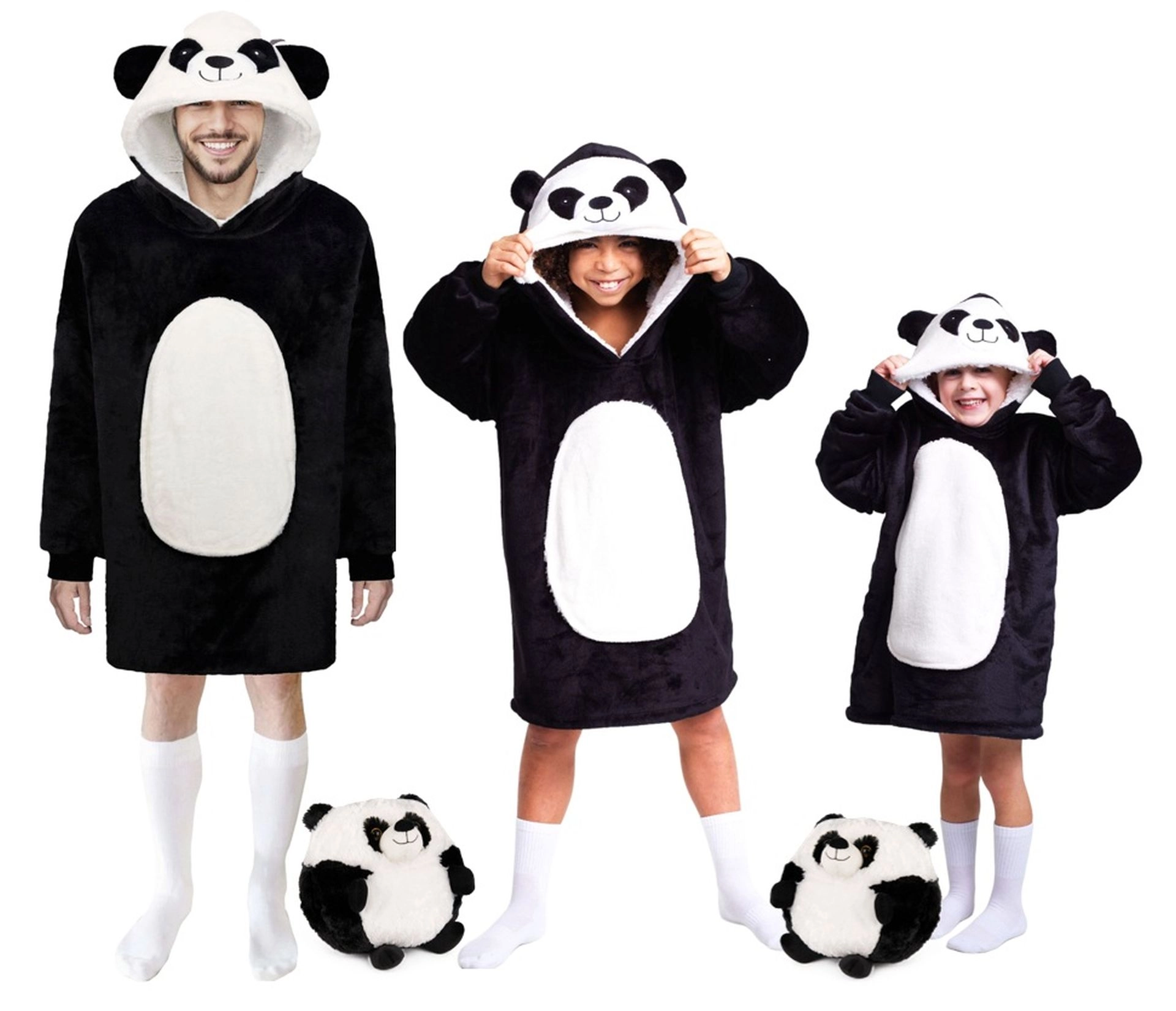Liela kapuce ar pandas motīvu, garas piedurknes un brīvs piegriezums sniedz komfortu bez kustību ierobežojuma un lieliski der dažādām auguma formām.