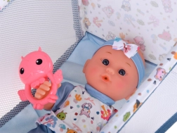 Sarūpējiet bērniem prieku ar realistisku mazuļa aprūpes komplektu, kas ietver visu nepieciešamo ikdienas rituāliem – no barošanas un pastaigas līdz ielikšanai gulēt. Lellei ir kustīgas ekstremitātes, mīksts apģērbs, un tā ērti sēž gan krēsliņā, gan ratiņos. Ratiņiem un gultiņai ir viegls un saliekams rāmis, tāpēc tos ir viegli pārnēsāt un ātri novietot glabāšanā.