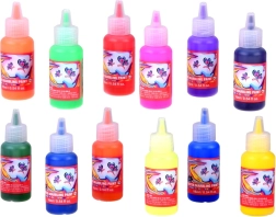 Mazās pudelītes ar smalku uzgali ļauj precīzi pilināt krāsu uz virsmas un veidot detalizētus efektus.