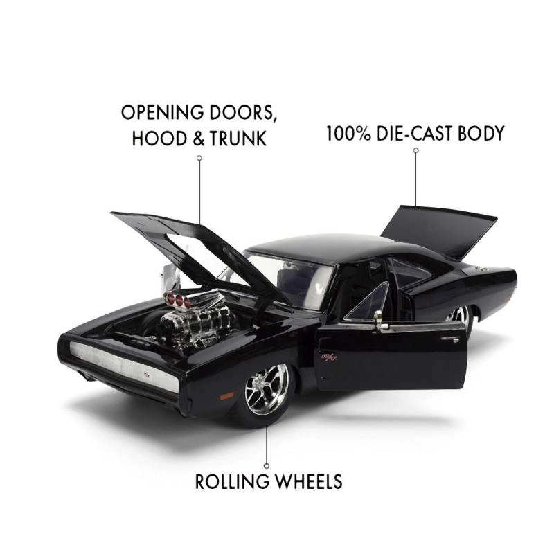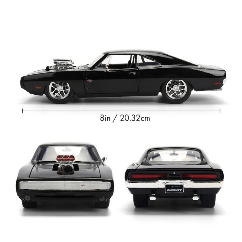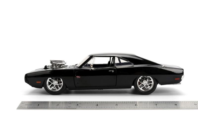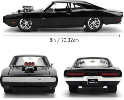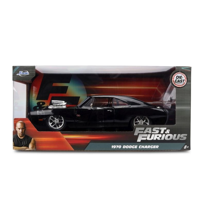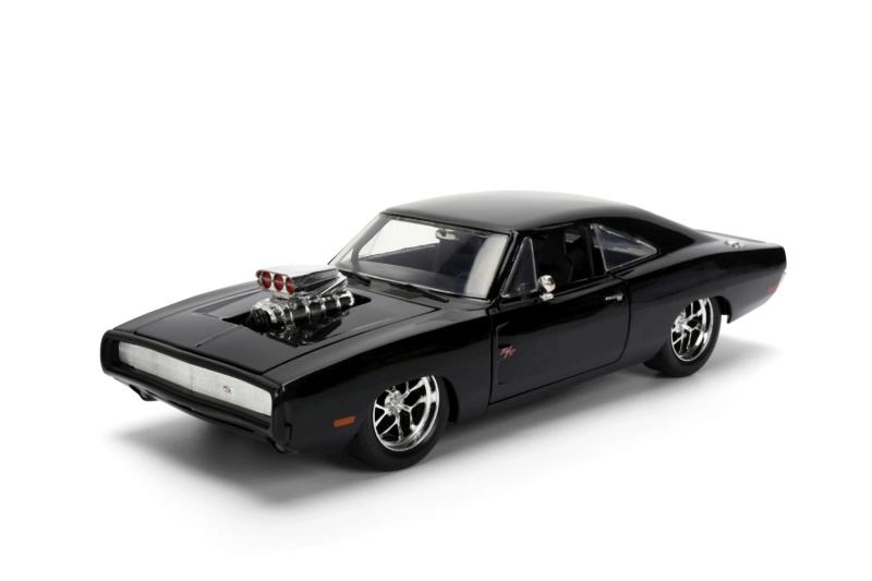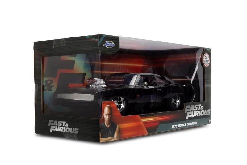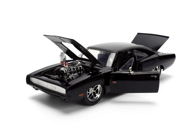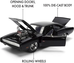 Ikoniskais kolekcionāru modelis 1970 DODGE CHARGER no filmas Ātrs un bez žēlastības mērogā 1:24 iepriecinās gan muscle car cienītājus, gan filmu sērijas fanus. Piedāvā metāla (die-cast) izpildījumu, atveramas durvis, motora pārsegu un bagāžnieku, kā arī realistiskas detaļas, tostarp izteiksmīgu kompresoru uz pārsega. Modeļa garums ir aptuveni 21 cm.