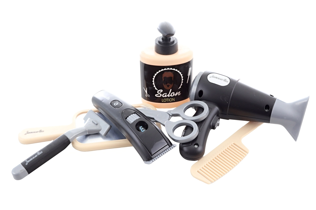 Sniedziet bērniem reālistisku frizētavas pieredzi. Šajā friziera komplektā ir ērta auduma josta kārtīgai rīku glabāšanai, bagātīgs piederumu klāsts un bateriju fēns, kas ieslēdzot spīd un izdod skaņas, pastiprinot īstas darba salonā sajūtu.