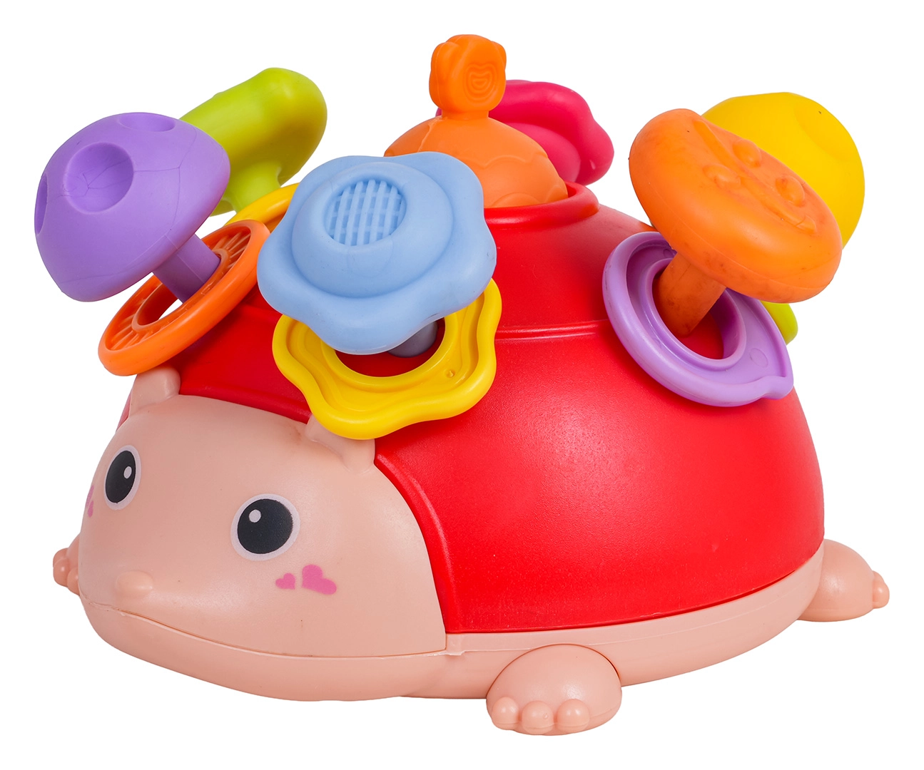 Mīļš sensorais ezītis bērniem no 18 mēnešiem attīsta sīko motoriku, sensoro uztveri un koordinācijas prasmes. Tam ir mīksti izciļņi, kas noder zobu šķilšanās laikā, krāsaini gredzeni ar grabulīti, poga spiešanai un vilkšanai, gumijas stiprinājumi rokām un kājām drošai vilkšanai un virpulis (spinneris) apakšpusē bezgalīgai griešanai. Izgatavots no drošiem materiāliem bez asām malām, košās krāsās, kas dabiski rosina bērnus rotaļām.