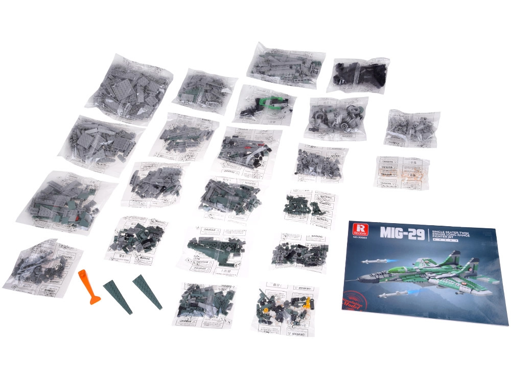 Iepakojumā ir vairāki maisiņi ar detaļām un pārskatāma MIG‑29 instrukcija. Būvēšana ir raita un skaidra no sākuma līdz beigām.