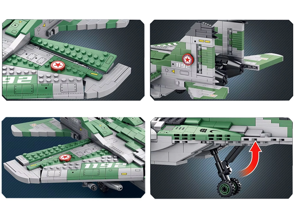 - Funkcionāli elementi: šasija, noņemamas raķetes, detalizēti spārni un aste