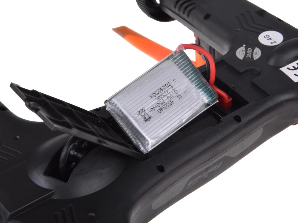 - Gudras funkcijas: palaišana/nolaišanās ar vienu pogu, headless režīms, atgriešanās, 360° flips