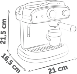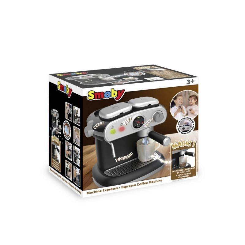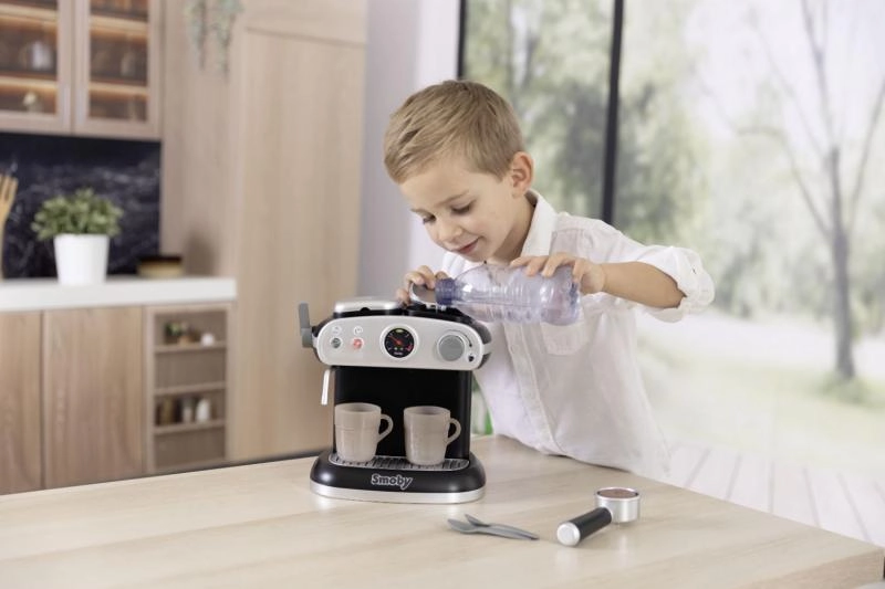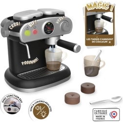 Aiciniet bērnus aromātiskās kafejnīcas pasaulē ar kompaktu bērnu espresso kafijas automātu, kas izskatās un darbojas kā īsts. Reālistiskie gaismas un skaņas efekti veicina iztēli un attīsta sociālās prasmes spēles laikā. Burvju krūzītes, kas maina krāsu, saskaroties ar aukstu ūdeni, piešķir katrai “porcijai” izklaidējošu šovu.