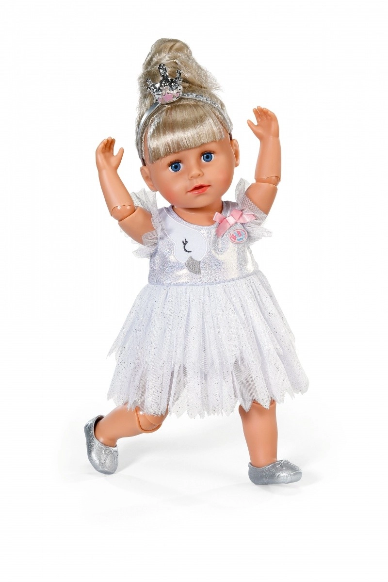 Uzbur savai lellei apburošu baleta pārvērtību. BABY born balerīnas tērps apvieno smalku eleganci un pārdomātas detaļas: mirdzošs audums, gulbja izšuvums un mīlīga bantīte iedvesmos bērnu uzstāšanos un fantāzijas lomu spēles.