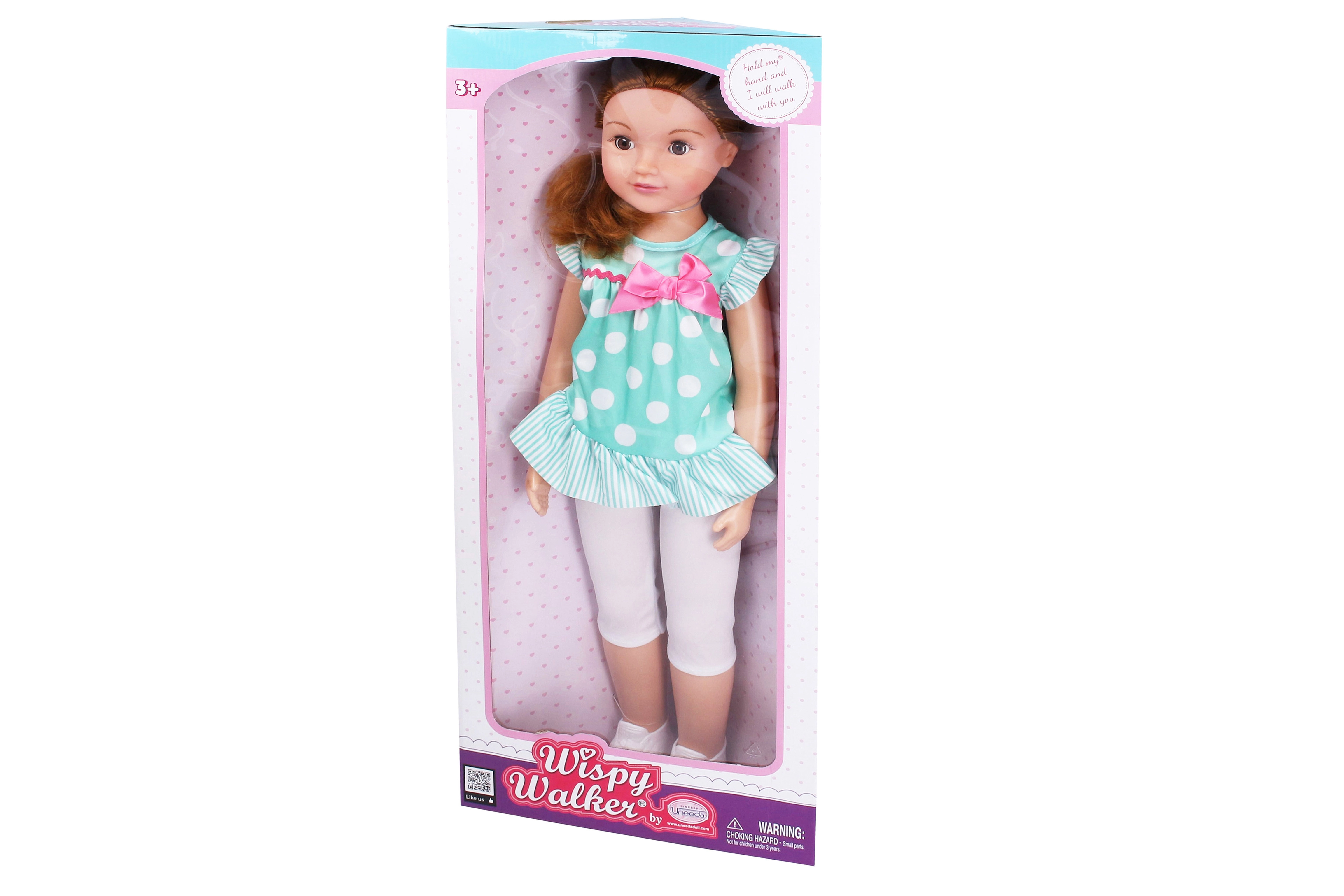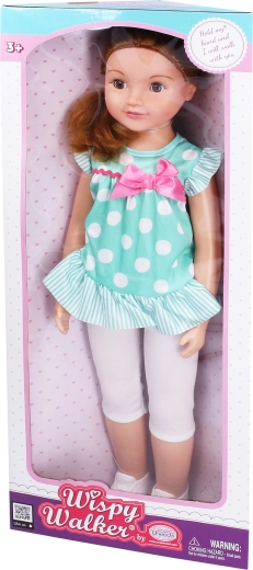 Mīlīga staigājoša lelle ar maigu lenti iepriecinās ikvienu bērnu. Tai ir mirkšķinošas acis, iespaidīgs 70 cm augstums un tā kustas, kad to vada aiz rokas – ideāls pavadonis rotaļām un iztēles attīstīšanai.