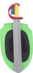 Zobena garums 57 cm ērti ieguļ bērna rokā, un zaļais vairogs nodrošina uzticamu “aizsardzību” katrā divkaujā. Lieliski piemērots karnevālam, kostīmiem, dzimšanas dienu ballītēm un āra spēlēm.