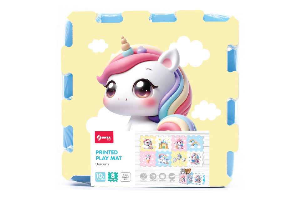 Iepriecini bērnu istabu ar rotaīgu un drošu mīksto putu bloku komplektu ar vienradža motīvu. Komplektā ir 8 gabali ar izmēru 30 × 30 × 1 cm, ideāli piemēroti spēlēm, likšanai un kā pamatne. Vieglas, mīkstas un viegli kopjamas detaļas pasargā no aukstuma un amortizē triecienus.