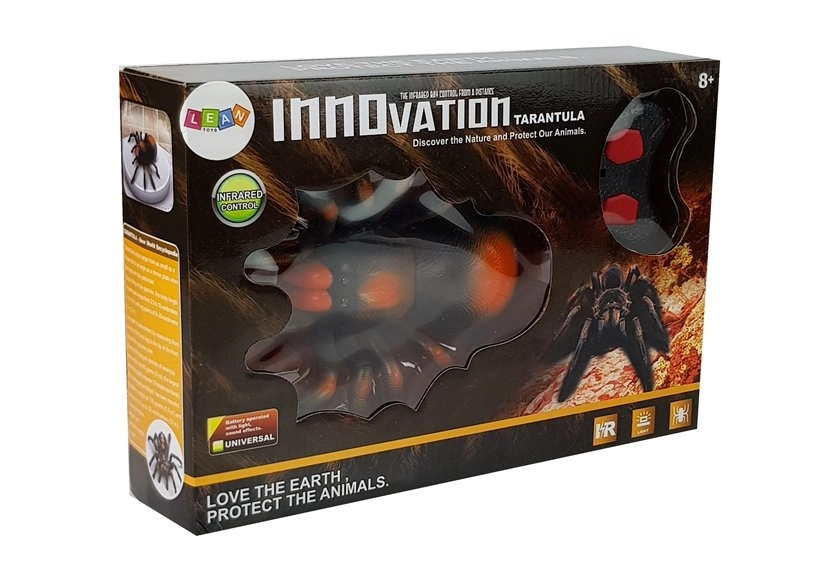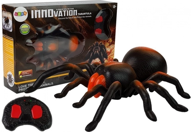 Milzu melni oranžā tarantula no pirmā acu uzmetiena izskatās kā dzīva. Izgatavota no kvalitatīvas plastmasas, ar detalizētām tekstūrām, spīdošām acīm un plūdenu kāju kustību. Infrasarkanajā pultī ir divas lielas pogas: viena plūdenai kustībai uz priekšu un otra ātram pagriezienam pa labi. Ideāli piemērota rotaļām mājās, svinībās un kā biedējoša dekorācija.