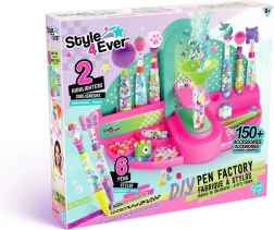Atklājiet radošu izklaidi ar komplektu Style4Ever DIY stilīgo pildspalvu rūpnīca. Izveidojiet savas oriģinālas rakstāmpiederumu variācijas, pateicoties bagātīgajam aprīkojumam ar dekorācijām, uzlīmēm un aksesuāriem. Lieliski piemērots iztēles attīstīšanai, sīkās motorikas pilnveidei un personīgajam stilam. Bez baterijām, piemērots bērniem no 6 gadu vecuma.