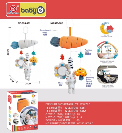 Sensorā piekaramā rotaļlieta ratiņiem, gultiņai vai autosēdeklim ir piemērota no pirmajām dzīves dienām. Tā izgatavota no mīkstiem un drošiem materiāliem, piedāvā čaukstošus un pīkstošus elementus, vēja zvaniņus un drošu spogulīti. Košas krāsas veicina koncentrēšanos, satveršanu un mazuļa maņu attīstību.