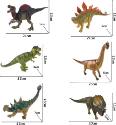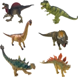 - Komplekts ar 6 figūriņām dažādu dinozauru sugu, tostarp majestātiskais tiranozaurs un iespaidīgais triceratops.