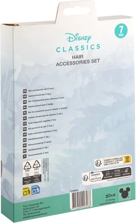 Šis rotaļīgais matu aksesuāru komplekts ar iemīļoto varoni STITCH piedāvā visu nepieciešamo ikdienas stilam. Pateicoties gumiju, sprādžu, lentīšu un praktiskās birstes kombinācijai, var izveidot neskaitāmas frizūras, ko saskaņot ar dažādiem tērpiem.
