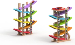 Paplašiniet bērnu sacīkšu piedzīvojumus ar 6 krāsainām rampām šajā izturīgajā koka sacīkšu trasē. To var izmantot atsevišķi vai kā paplašinājumu lielajai trasei. Piedāvā vienkāršu salikšanu, izturīgu konstrukciju un attīsta sīko motoriku, acu–roku koordināciju un loģisko domāšanu. Komplektā ir 18 detaļas, tostarp mašīnītes, piemērots bērniem no 18 mēnešu vecuma.