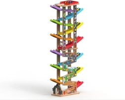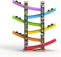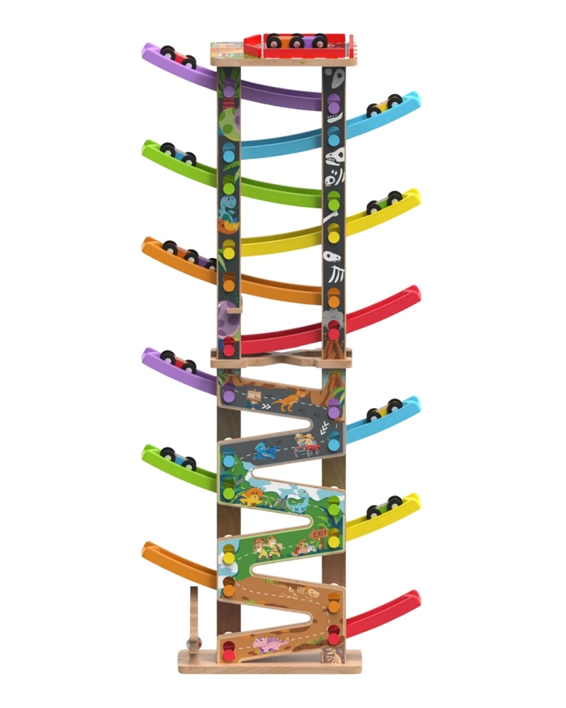 Šī lielā koka sacīkšu trase bērnistabā ienes vairāk ātruma un izklaides. Pateicoties sešām košām rampām, bērni vēro plūstošu mašīnīšu braucienu un iepazīst gravitācijas un cēloņa–seku principus. Trasi var lietot pilnīgi atsevišķi vai pievienot kā paplašinājumu jūsu esošajai trasei vēl garākam un dinamiskākam braucienam.