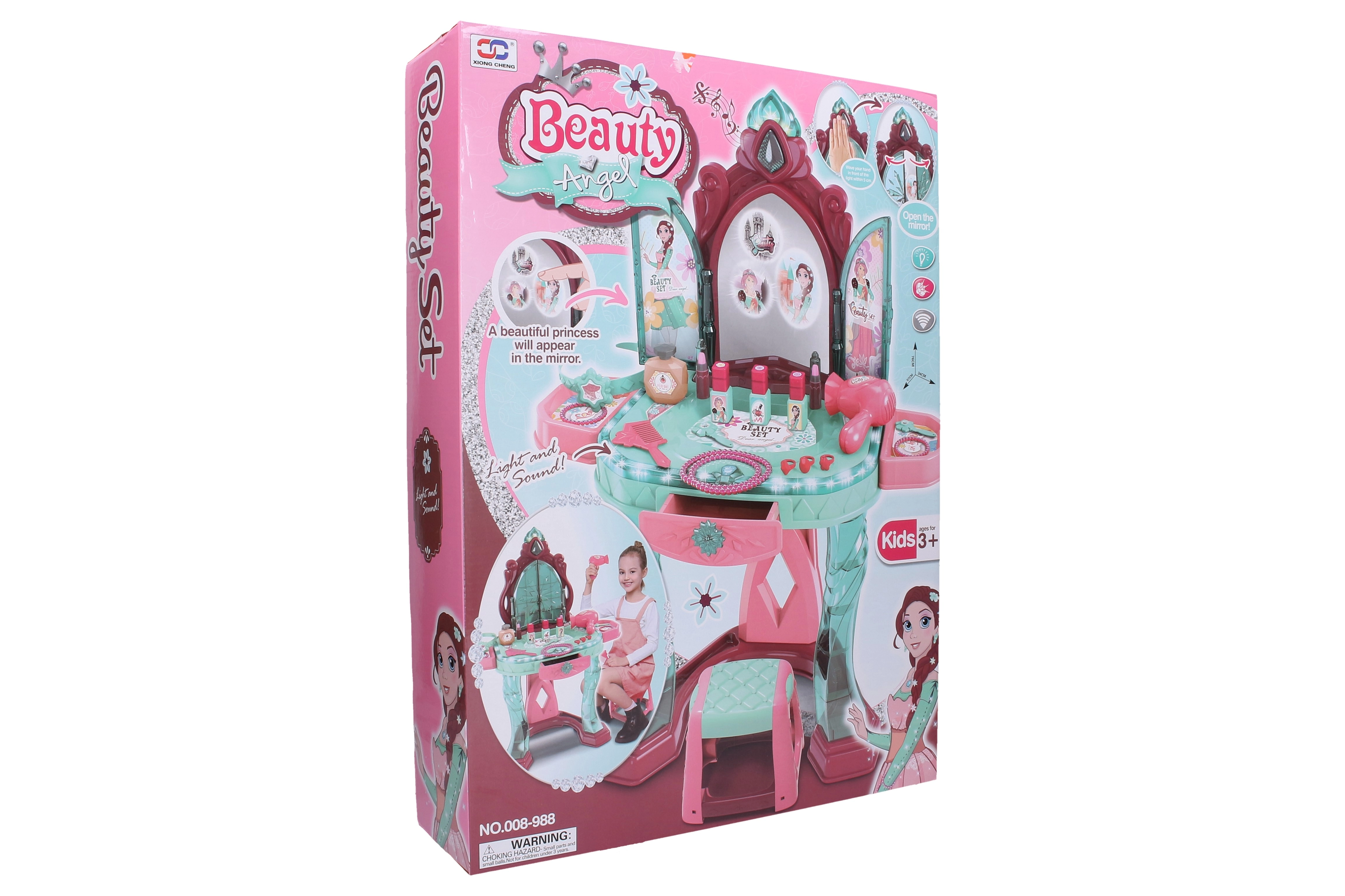 Šis valdzinājuma pilnais kosmētikas galdiņš ir ideāli piemērots mazajām dāmām, kurām patīk princeses pasaule. Pateicoties interaktīvajiem efektiem, spēle kļūst vēl aizraujošāka – pietiek pamāt ar roku aptuveni 5 cm priekšā kristālam virs spoguļa, un spogulis maģiski atveras ar princeses motīvu projekciju. Kvalitatīvs izpildījums un droši materiāli nodrošina ērtu un drošu spēli.