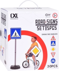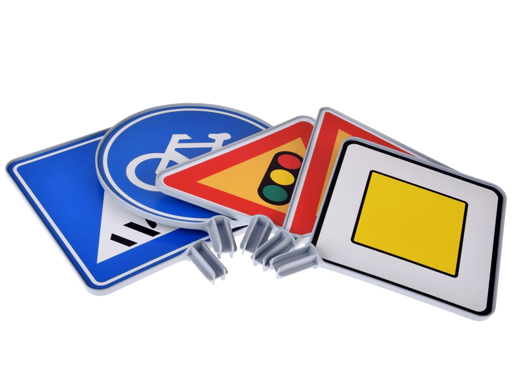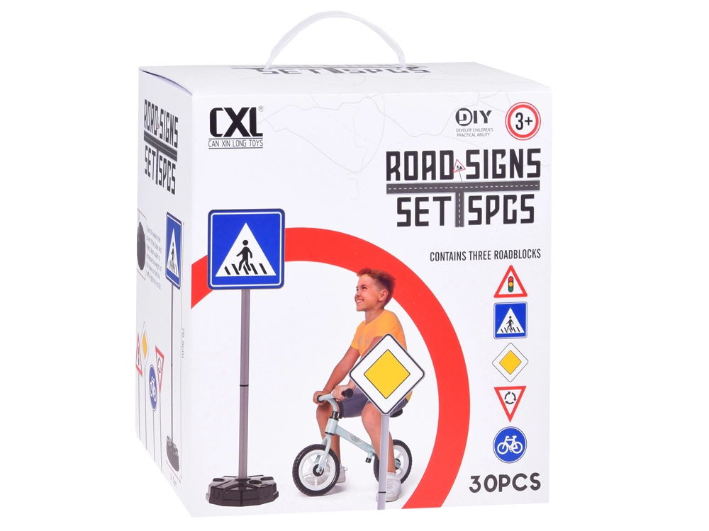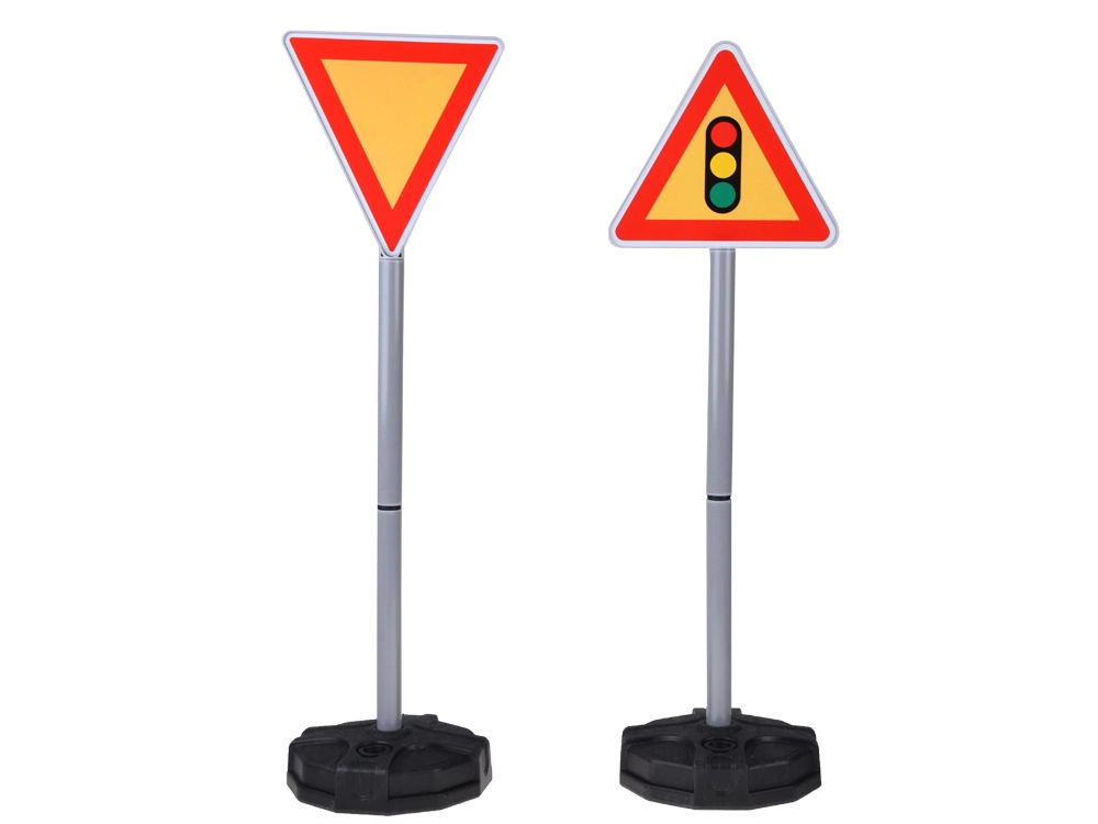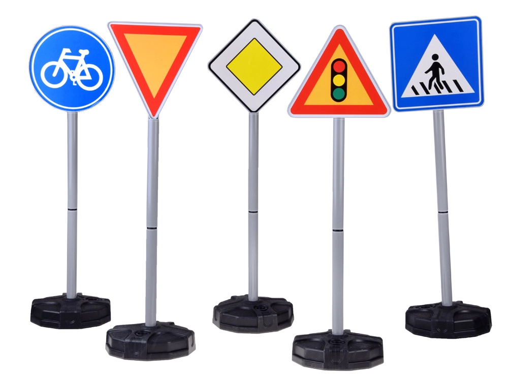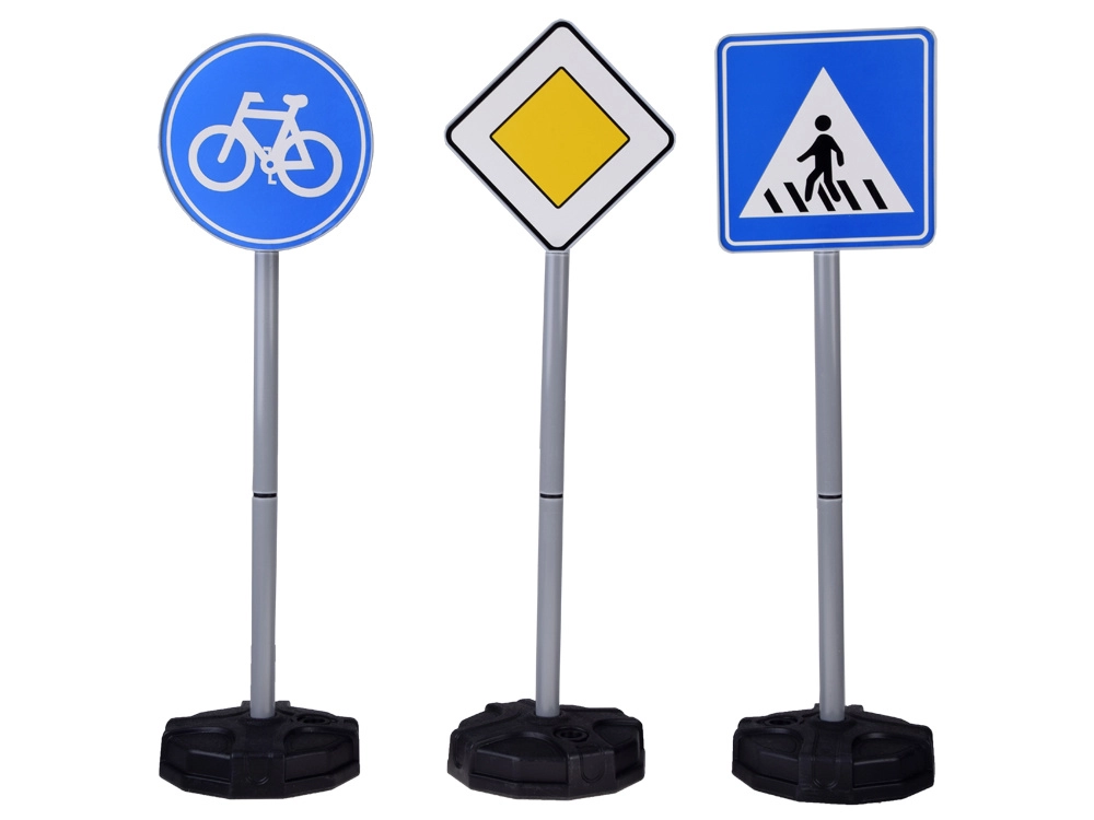 Šis izglītojošais ceļa zīmju komplekts ir lielisks veids, kā bērniem rotaļīgā formā iepazīt ceļu satiksmes noteikumus. Pateicoties reālistiskām formām, aptuveni 77 cm augstumam un košām krāsām, bērni viegli iegaumēs atsevišķu zīmju nozīmi un izkops pareizu uzvedību uz ceļa.