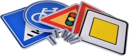 - 5 ceļa zīmju figūras (luksofors, gājēju pāreja, galvenais ceļš, apļveida krustojums, velosipēdu ceļš)