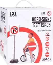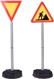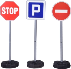 Šis interaktīvais komplekts ietver 5 populārākās satiksmes zīmes: ceļa darbi, dodiet ceļu, STOP, autostāvvieta un iebraukt aizliegts. Salikšana ir vienkārša – katrs statīvs sastāv no pamatnes, caurulēm un savienotājiem. Pamatnes var piepildīt ar ūdeni vai smiltīm maksimālai stabilitātei arī aktīvas spēles laikā.