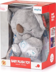 Nomieriniet savu mazuli ar mīksto koalu, kas piedāvā gaismas “elpošanas” efektu, nomierinošas melodijas un maigu apgaismojumu vieglākai iemigšanai. Vieglā un drošā mīkstā rotaļlieta ir ideāla mājās un ceļā, darbojas ar baterijām ar droši noslēgtu nodalījumu.